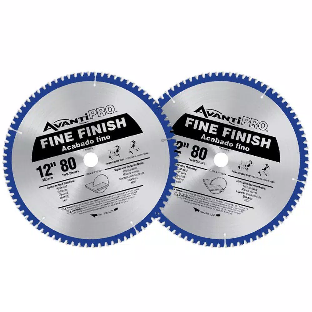 Create fine, smooth cuts in wood with the AvantiPRO 12 in. Fine Finish Saw Blades. They were made of carbide for durability. Use them with 1 in. arbors. Two blades are included.