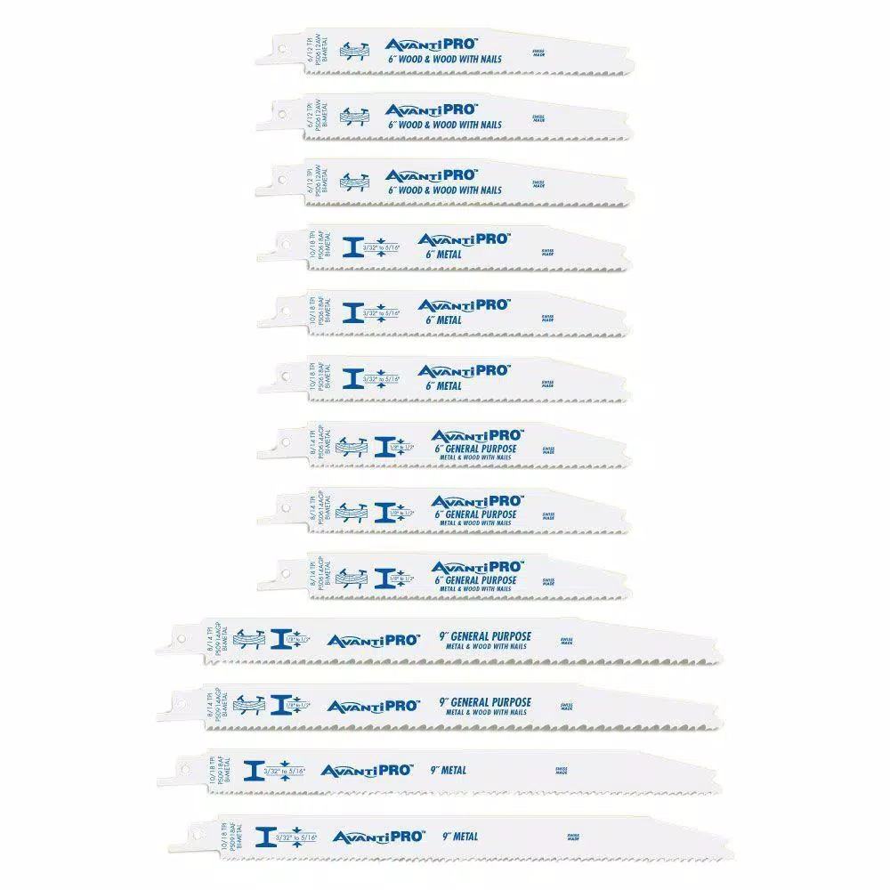 Avanti Pro reciprocating saw blades provide top quality performance at a low price. These blades feature the fastest plunge tip on the market which means faster job completion. Variable tooth technology provides faster cuts with less vibration. This 13-piece set provides up to 40% in savings.