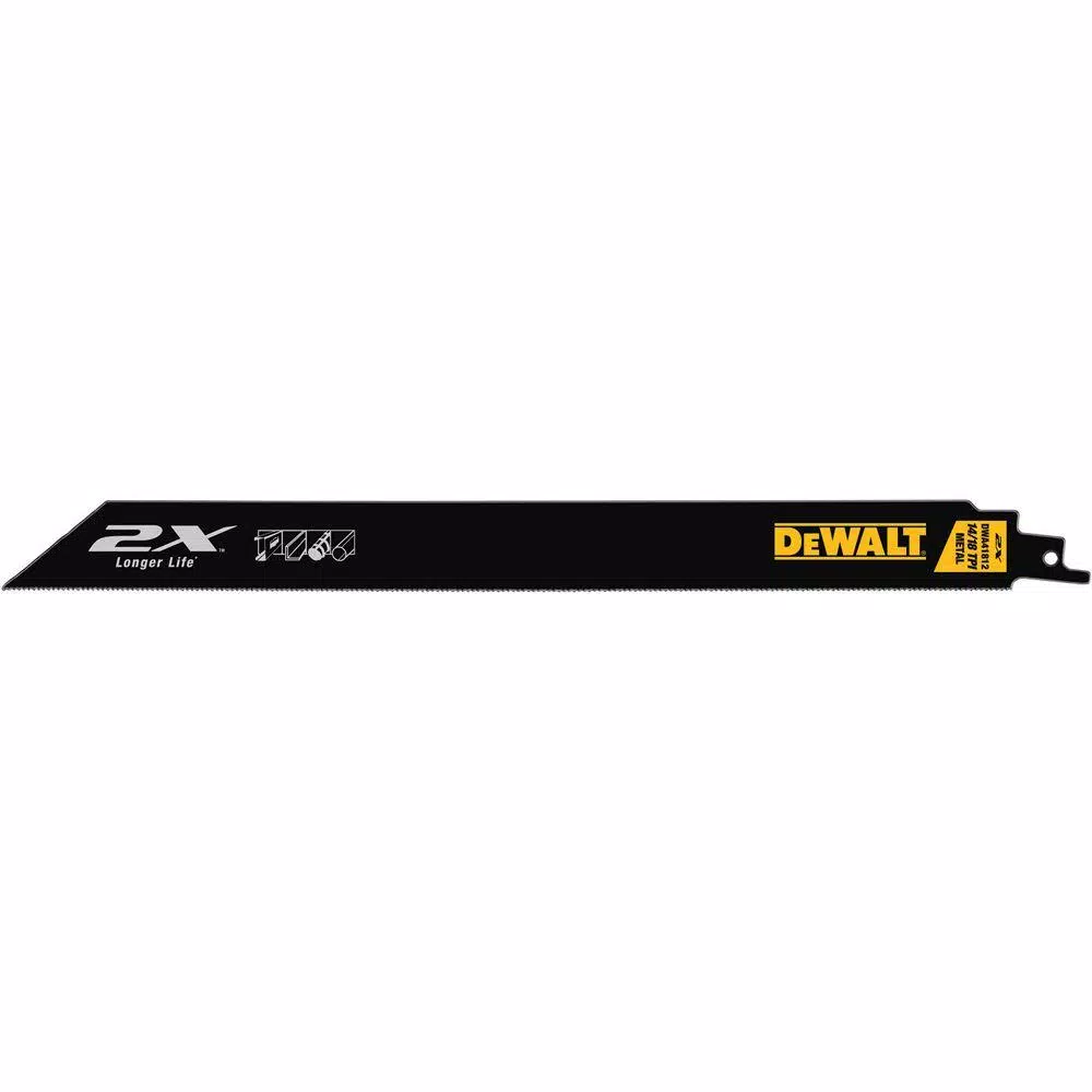 DEWALT 2X Long Life Metal Cutting Reciprocating Saw Blades can withstand extreme jobsite conditions. A tall, high-speed steel strip helps to reduce breakage and maximizes tooth life. An aggressive shank angle helps to increase tooth contact and a patented design delivers fast cut rates in common metal cutting applications.