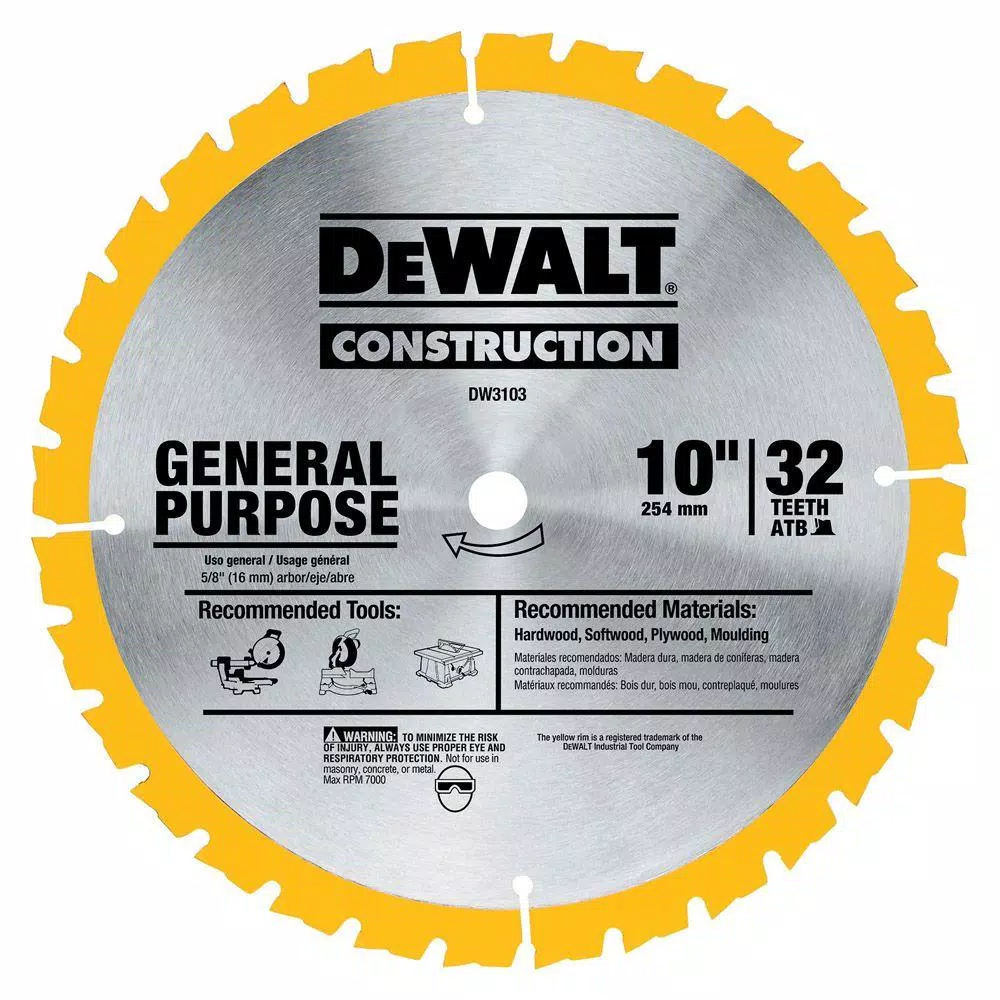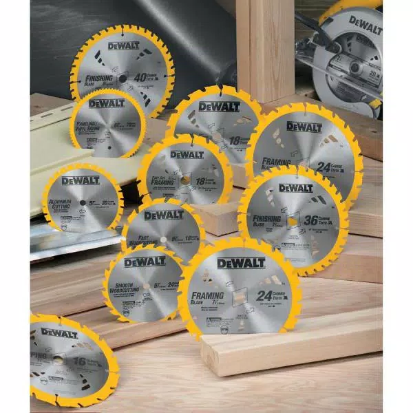 Donβt let an inferior saw blade slow down your circular saw. Step up to a DEWALT Construction Saw Blade and slice through a variety of jobsite building materials, including construction lumber, plywood, OSB and siding. The contractor-duty, thin-kerf blade features extremely durable tungsten carbide teeth, which stay sharper longer than standard carbide blades. It also has a specially formulated anti-stick coating that reduces friction and sticky gum buildup, and ribbed heat vents that allow the blade to run cooler and cut quicker while eliminating warping.