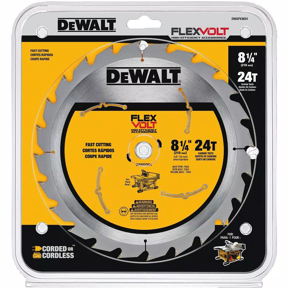 DEWALT FLEXVOLT high efficiency accessories are engineered to maximize runtime. The saw blades feature a thin kerf design for smooth, efficient cuts, mibmicron grade carbide tips for long life, and body slots for low vibration. For use in cordless and corded tools.