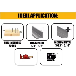 - Variable tooth pattern (4/6 for wood, 14/18 for metal) for fast cuts