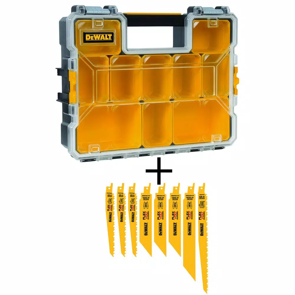 DEWALT FLEXVOLT high efficiency accessories are engineered to Maximize run time. Featuring TOUGHCOAT finish and a variable tooth pattern for fast, efficient cuts, and high speed steel teeth for long life and durability. For use in cordless and corded tools. This combo also includes a 10-Compartment Deep Pro Small Parts Organizer.