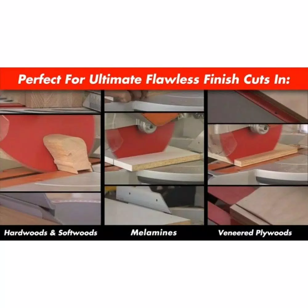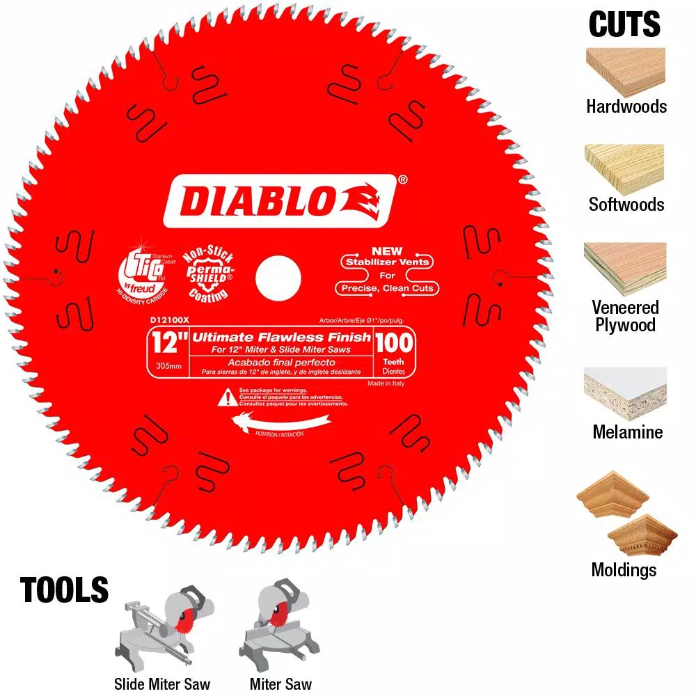Diablos new Ultimate Polished Finish saw blades feature Axial Shear Face Grind (ASFG) that cleanly shears through materials for superior quality finishes on fine molding, hardwoods, softwoods, veneered plywood, melamine and more. Also featuring Double-Side Grind tooth geometry, an incredible 200 additional grinds, this blade produces precise, polished-like cuts equal to that of 220-Grit sandpaper or higher. Diablos proprietary TiCo Hi-Density Carbide is designed specifically to deliver extreme durability and 5X longer life on materials requiring polished-like finishes. Unlike other blades on the market, Diablos Ultimate Polished Finish saw blades have a laser-cut, ultra-thin kerf blade design for fast, effortless cuts on corded or cordless saws making this the go-to blade when working at a permanent location or at a portable jobsite. Diablos new Ultimate Polished Finish saw blades are Redefining cutting by introducing radical technology to maximize performance and extend cutting life, saving the PRO both time and money when completing their projects.