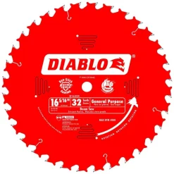Diabloβs next generation 16-5/16 in. x 32 Tooth 1 in. General Purpose Beam Saw Blade features new laser-cut stabilizer vents for precise and clean cuts. The advanced stabilizer vents feature a permanent filler baked in from top to bottom for absorbing noise and preventing sideways movement, allowing the blade to slice through wood cleanly, quickly and accurately. Constructed with TiCo Hi-Density special-blend carbide, the teeth rip through wood with increased durability, performance and cutting life. Cut from Hardcore Steel with high precision lasers, the bladeβs ultra thin kerf design provides fast, effortless cuts. Non-stick Perma-Shield coating protects the blade from heat and corrosion, reduces friction and pitch buildup. Laser-cut stabilizer vents absorb noise and reduce vibration for a cleaner cut and longer life.