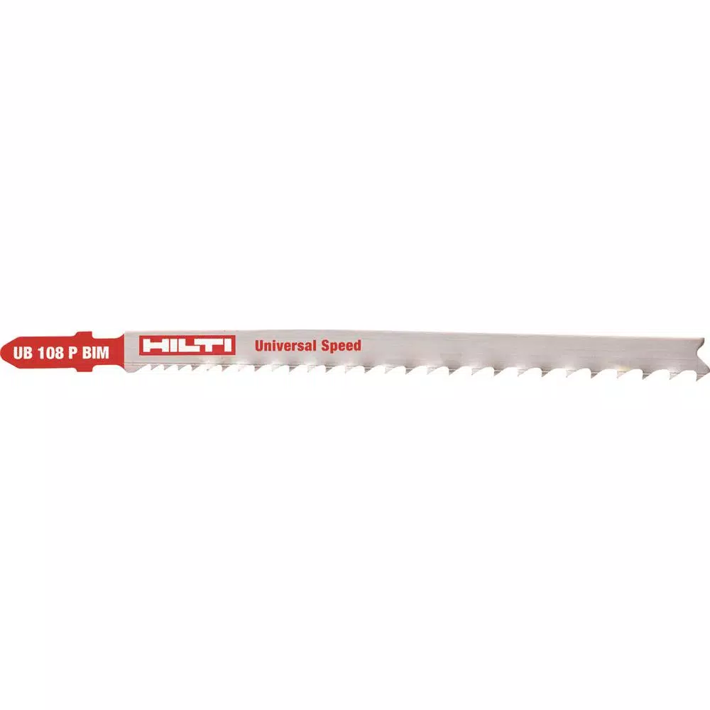 Cut multiple materials, metals and tackle woodworking projects with the Hilti Jig saw Blade. This 5-pack contains five 4.25 in. 5-10 TPI UB 108 Bi-Metal T-Shank Premium Jig Saw Blades. The bi-metal construction offers premium performance and a universal fast cut.