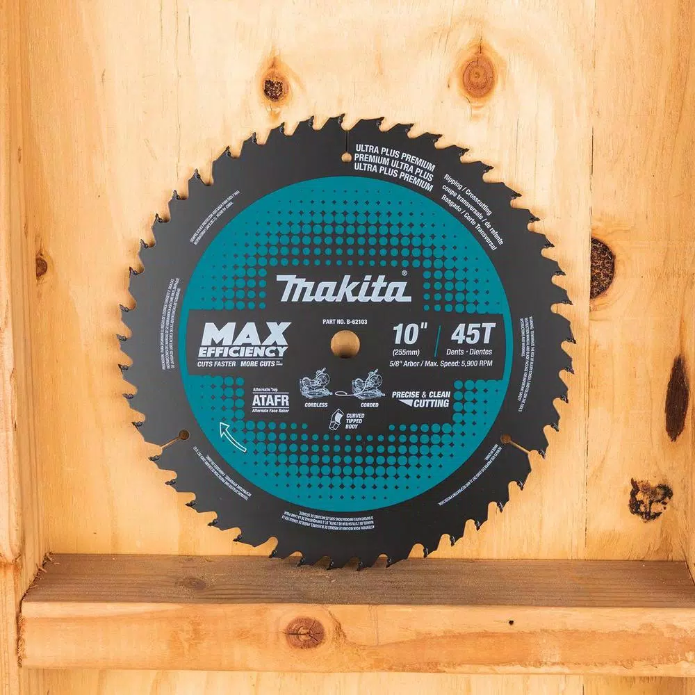 - 45 Tooth/5/8 in. arbor; carbide tipped for premium, crosscutting in construction lumber and plastics