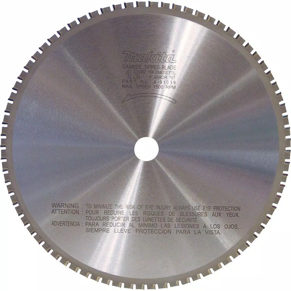 The Makita 12 in. 76T Stainless Steel Cutting Saw Blade is great for making cuts in stainless tubing, angle iron, channel and more. The carbide tooth design allows for burr-free cuts that are cool to the touch. Blade lasts 50 times longer than an equivalent abrasive wheel.