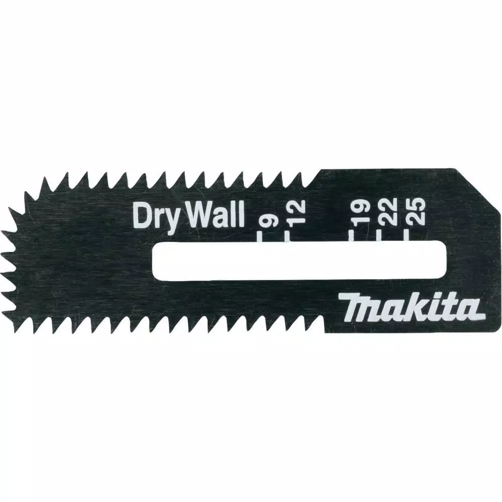 The Makita Cut-Out Saw Blade is the right accessory for straighter, more accurate cutting in installed drywall. When used with the Makita 18V LXT Lithium-Ion Cordless Cut-Out Saw (XDS01Z, sold separately), the B-49703 blade is ideal for cut-outs and repair applications. The blades have depth markings for easier adjustments and will cut drywall board up to 1-3/16 in. thick. For longer performance life, the blades are constructed with durable High Carbon Steel (HCS).