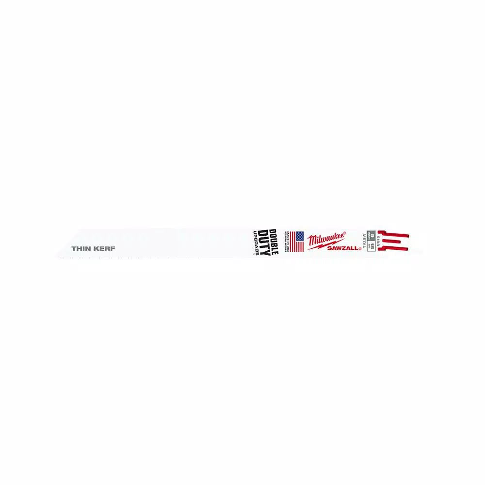 The Milwaukee 48-01-6188 9 in. x 18 TPI Thin Kerf metal-cutting blades with the Double Duty Upgrade feature a tooth form that is optimized for the longest life and increased speed. Tough Neck is engineered to protect against tang breakage and delivers the strongest SAWZALL blade tang on the market. Maintaining a short profile and thin body, these blades are ideal for making fast, flexible cuts. The Milwaukee 48-01-6188 contains 50 blades.