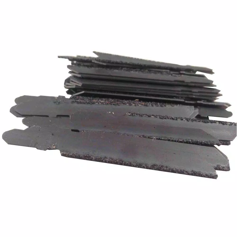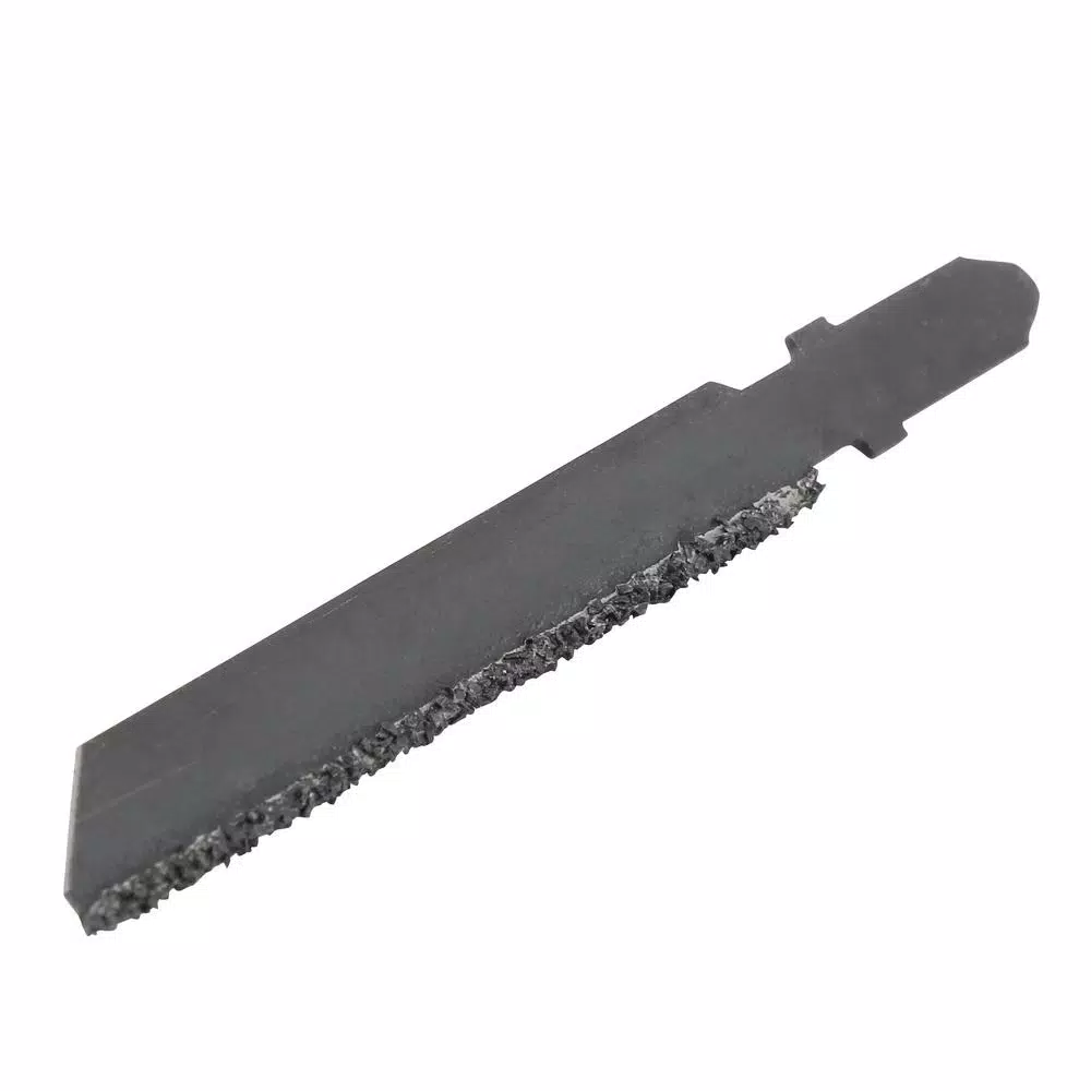 Carbide grit jig saw blades cut extremely hard abrasive materials. Cutting edge of tungsten carbide particles bond to alloy steel back. They have high heat and abrasion resistance, no teeth to dull or chip, resistance to snagging, smooth cutting and greater wear resistance.