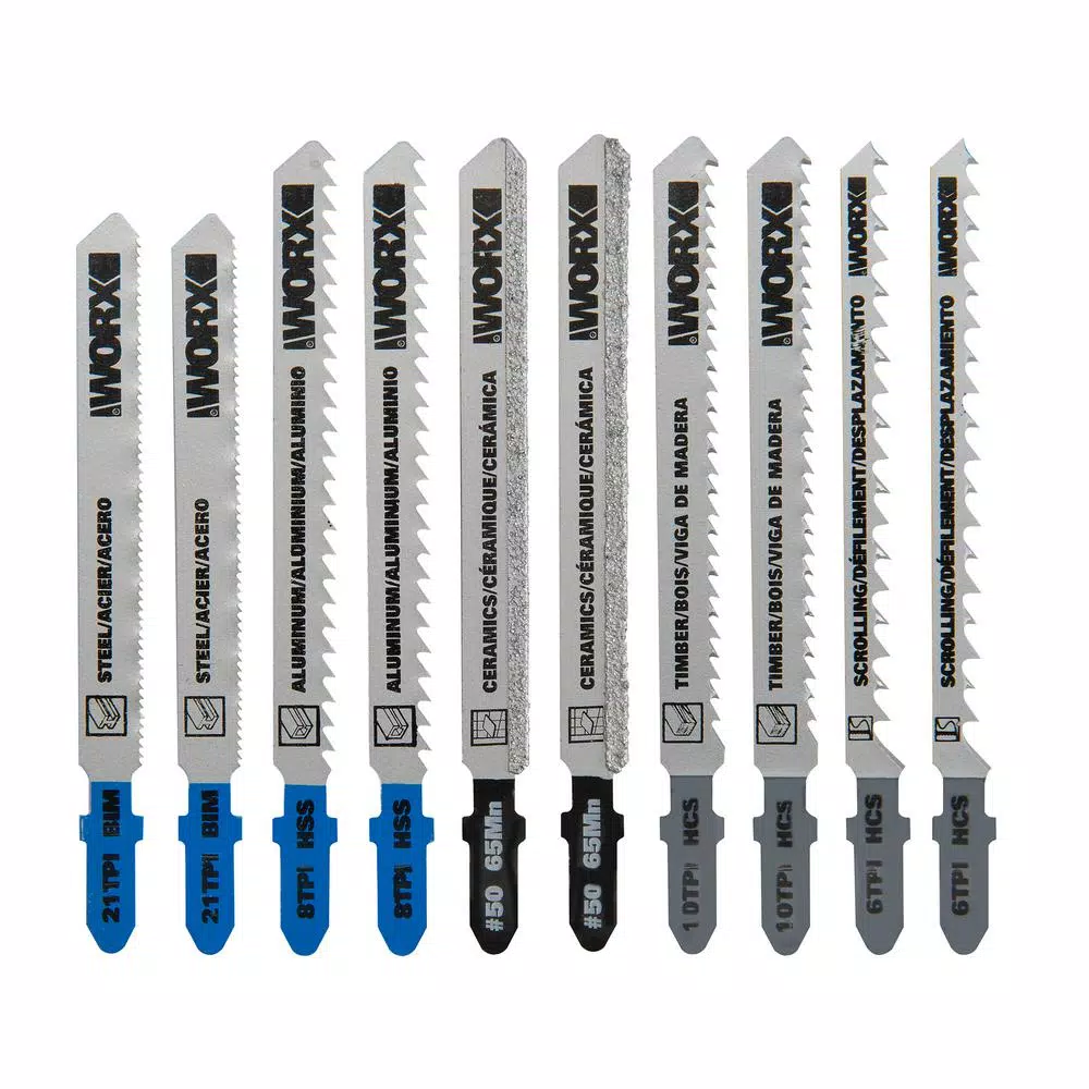 T-Shank blades fit both Worx and Rockwell Blade runners and the Worx Axis WX550L. Jigsaw assorted blade set, sold as 10 blades. Jigsaw assorted blade set, sold as 10 blades per pack.